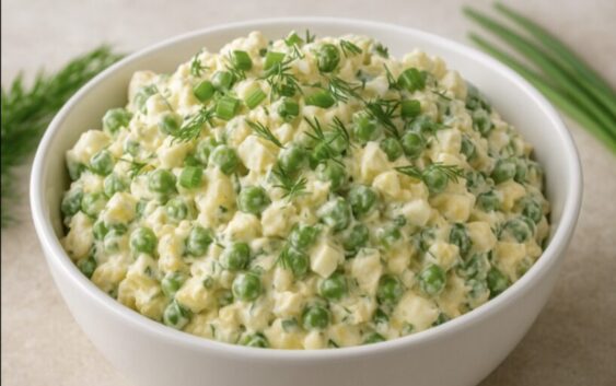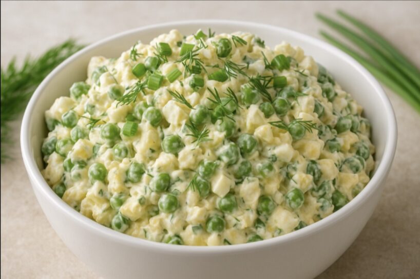 Šis ēdiens apvieno sevī kausētā siera maigumu, vārītu olu sātīgumu un zaļo zirnīšu svaigumu. Visa pagatavošana aizņem ne vairāk kā 5 minūtes aktīvā laika, tāpēc to var ātri sarūpēt negaidītiem ciemiņiem. Salāti ir tik vienkārši, ka ar tiem tiks galā pat tas, kurš reti stāv pie plīts.