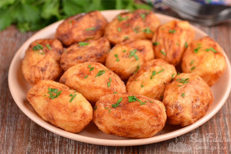 5. Kartupeļi iznāk skaisti zeltaini brūni ar kraukšķīgu garoziņu (kraukšķīgums ir viegls), aromātiski un ļoti, ļoti garšīgi. Tie lieliski sader ar jebkuru gaļas vai zivju pamatēdienu.
