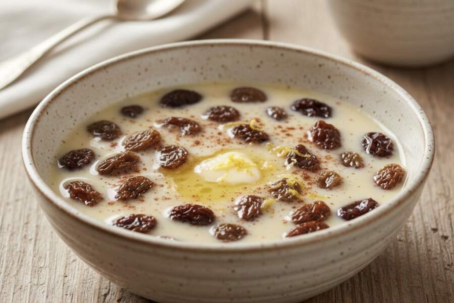 Parasti mājās vienmēr atrodas kāda paka piena un paciņa rozīņu, kas palikusi pāri no pēdējās cepšanas. Dažreiz tieši no šādiem pavisam parastiem produktiem sanāk tie mājīgākie un siltākie deserti. Šī recepte ir tieši tāda — bez liekas sarežģītības un ilgiem sagatavošanās darbiem.