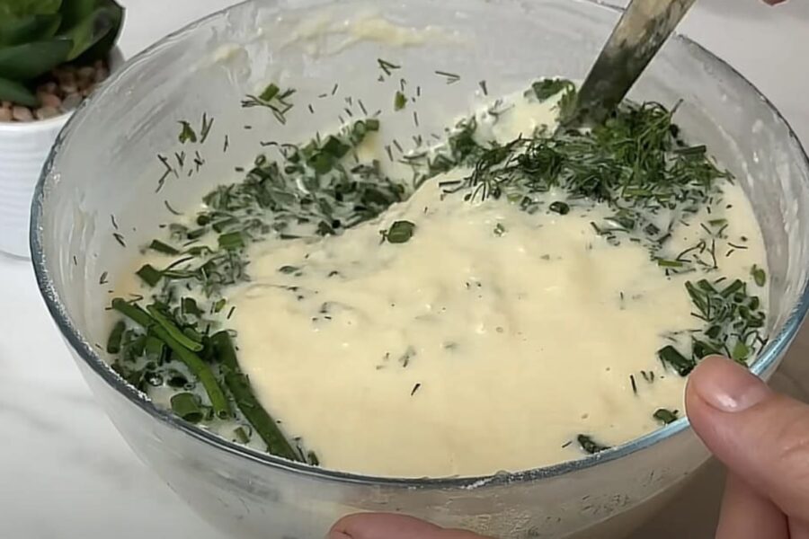 Zaļumus iemaisa pašā pēdējā brīdī, lai tie saglabātu savu aromātu. Tiklīdz mīkla ir gatava, tai nav ilgi jāstāv – var uzreiz ķerties pie cepšanas. Kartupelis rīvēts smalki, tāpēc tas izcepsies ļoti ātri un nebūs jāsatraucas, ka masa varētu palikt jēla.