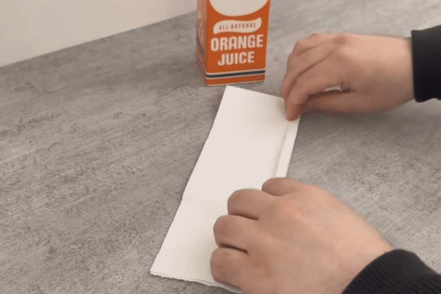 Papīra sagatavošana. Saliek vairākas tualetes papīra loksnes un sarullē tās stingrā, tievā rullītī.