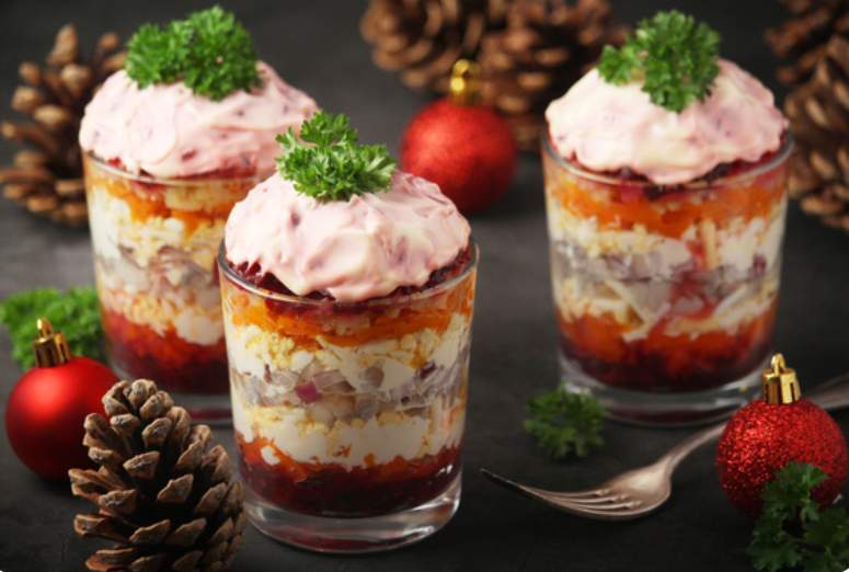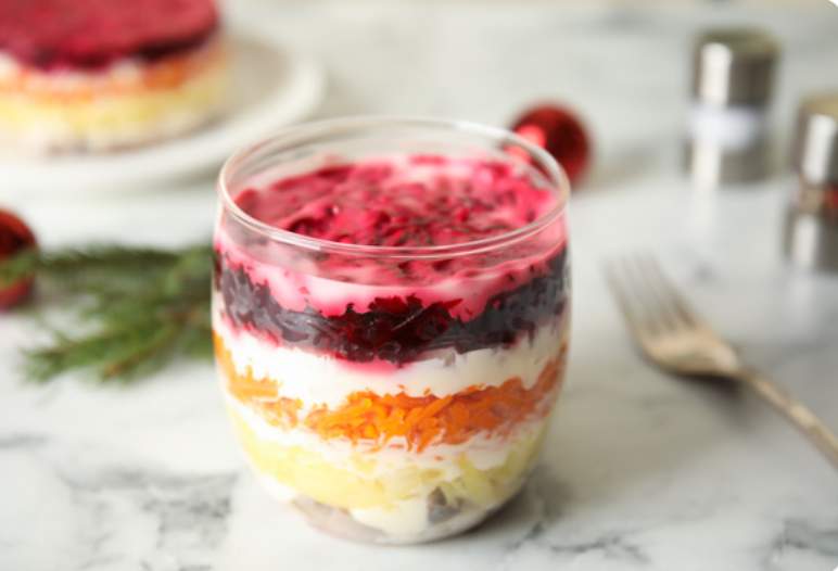 Klasiskā slāņu secība “siļķē kažokā” ir šāda: