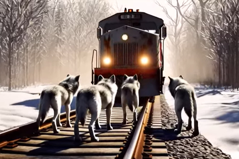 Vilku bars nostājās uz sliedēm un bloķēja vilciena ceļu, izrādījās viņi tikai aizsargāja