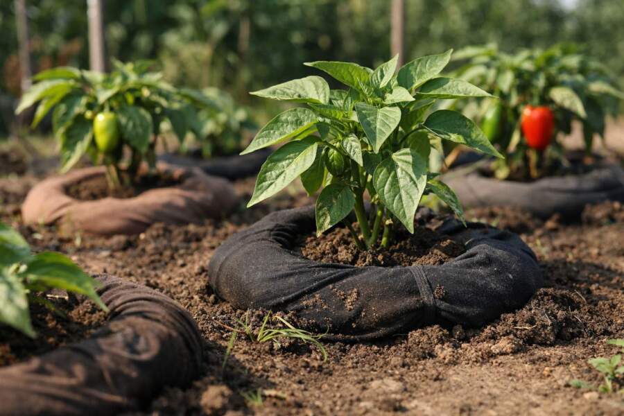Zem katra paprikas krūma liku vecas zeķubikses; vīrs smejas, bet raža lieliska – lūk kāpēc
