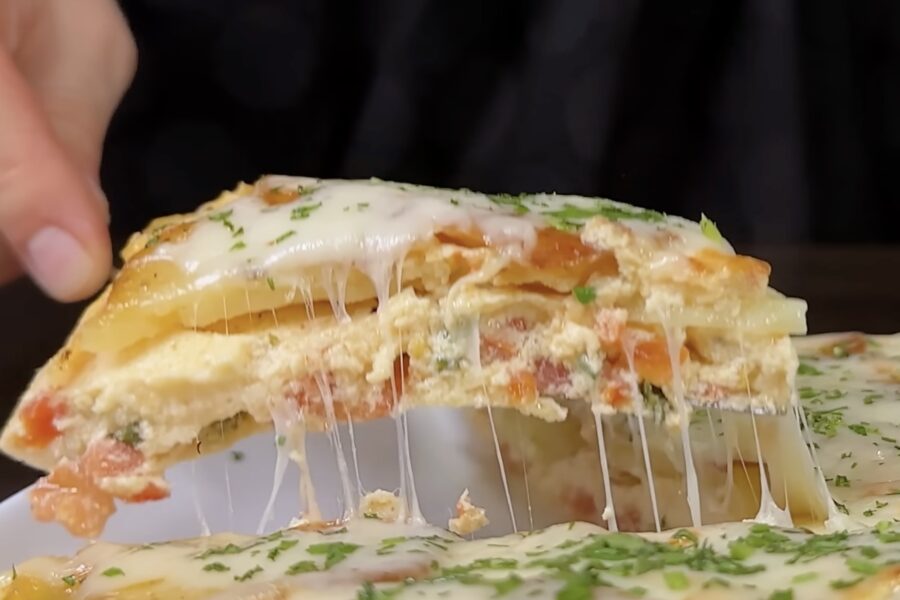 Uzliekot pannai vāku uz pāris minūtēm, notiek neliels brīnums. Siers izkūst, olas uzpūšas, un kartupeļi it kā ieslīgst šajā siltajā, krēmīgajā mērcē. Rezultāts ir kaut kas vidējs starp omleti un sacepumu. Tas izskatās tik kārdinoši, ka neviens vairs pat neatceras par gaļu vai citiem sarežģītiem ēdieniem.