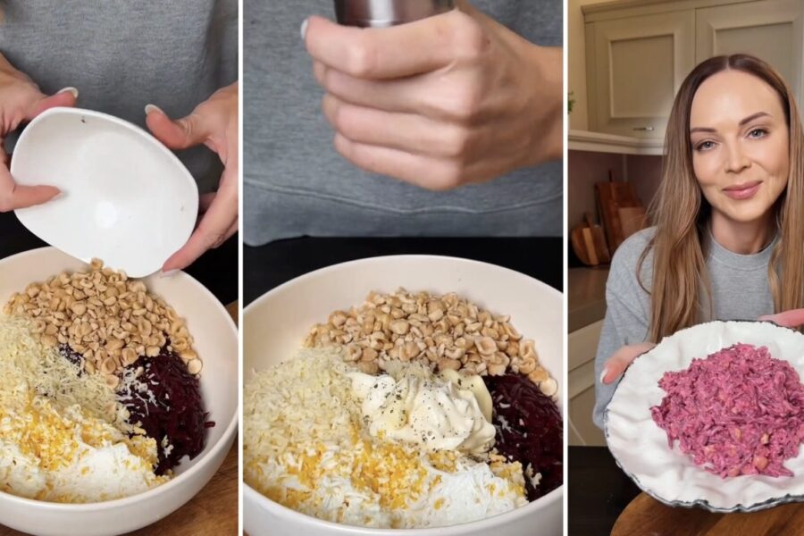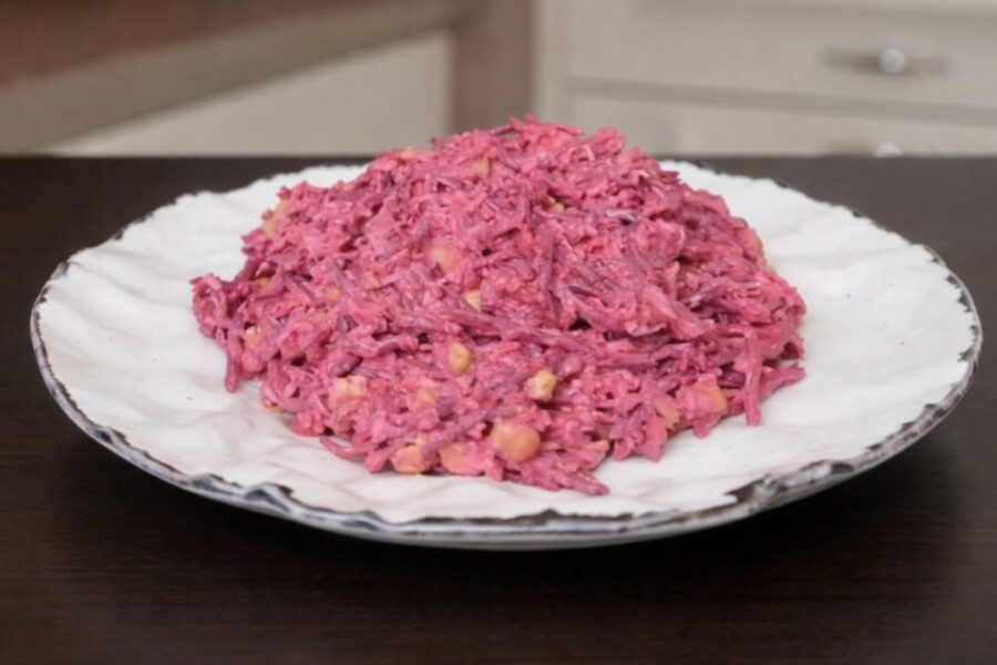 Ir viena maza viltība, ko vērts ievērot: ja bietes ir ļoti sulīgas, pēc rīvēšanas tās var nedaudz nospiest. Tas pasargās salātus no “peldēšanas” sulā pēc tam, kad tie būs brīdi pastāvējuši.