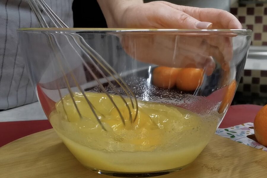 Kamēr mīklas pamatne gaida savu kārtu, var ātri sagatavot pildījuma šķidro daļu. Tas nav parasts krēms, bet drīzāk atgādina maigu suflē vai mājas saldējuma masu. Piens un krējums kopā ar olu un nedaudz miltiem veido ideālu saderību. Vaniļas cukurs šeit ir ļoti svarīgs, jo tas kopā ar mandarīnu miziņu aromātu rada to īpašo ziemas noskaņu, ko mēs visi tik ļoti mīlam.